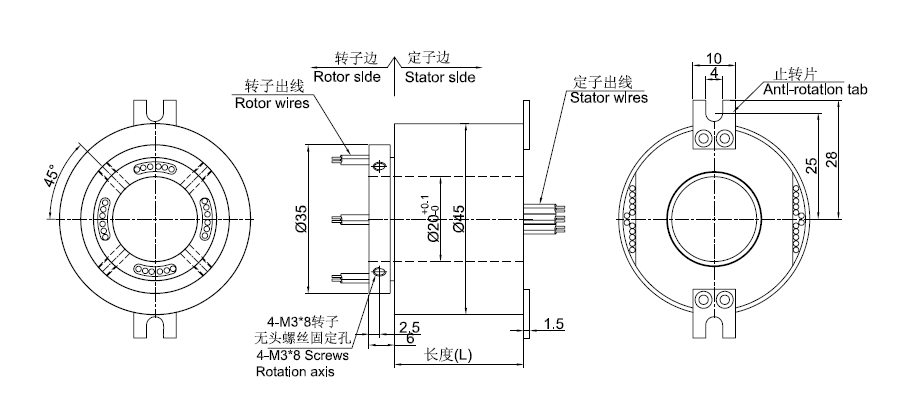 GT2045系列滑環,主要應用于360度連續旋轉且需要保證電源,信號不能中斷的場合:多用于各種自動貼補強機、自動焊接設備、精密模切機、鉚釘插件機、桌面點膠機、分選機、切紙機、裹式包裝機、全自動軟抽袋立封口一體機、半自動臥式軟抽袋雙頭封口機等任意需要360°旋轉導電或傳輸各種控制信號的裝置。